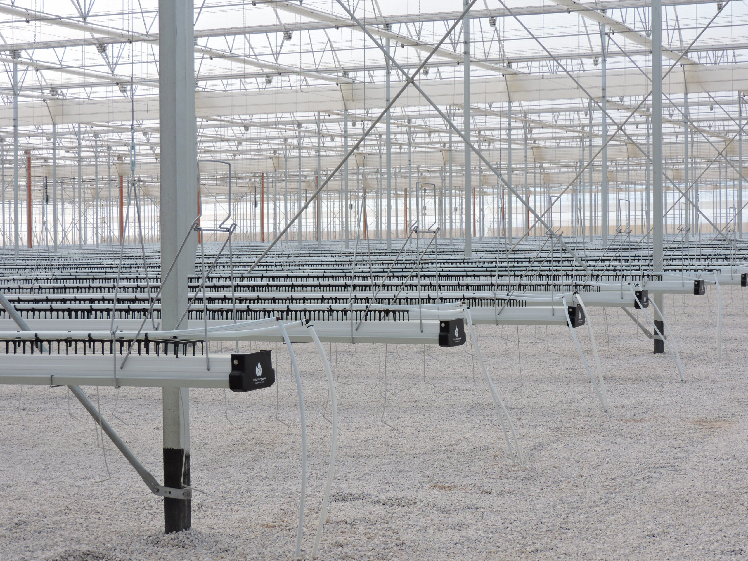 Una de las claves que incorpora el invernadero, y que los propios técnicos de la empresa destacan, es el uso de sistemas de cultivo hidropónico con canal metálica colgada de la estructura. Este sistema, que incluye un Spacer, hace que las bolsas de cultivo tengan una zona extra de aireación en la parte de abajo, que las raíces crezcan y se alimenten de forma homogénea, y que no estén en posibles contactos con superficies que provoquen estrés o enfermedades.